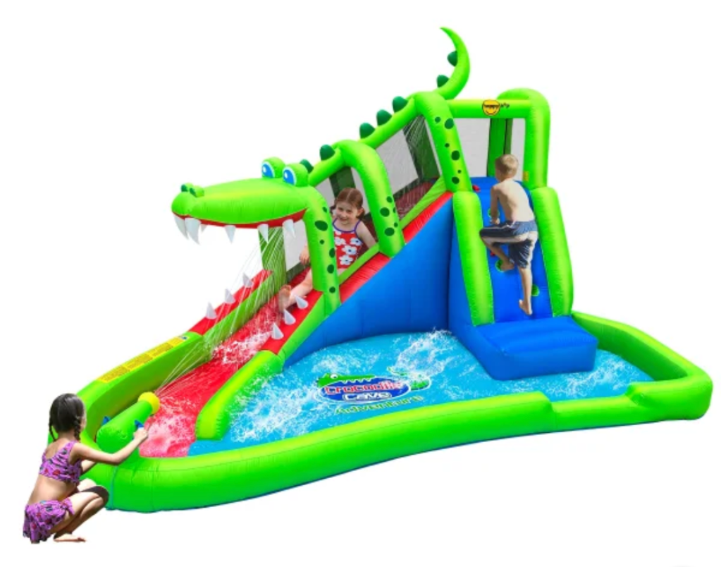 Ours has a shark instead of a crocodile, but it’s the same idea. And coming from Costco, you know you’re getting a great product at a nice price. We’ve tried other outdoor inflatable water activities (slip and slide, giant sprinkler), but this one has stuck around the longest. I can even lounge in the “pool” section as long as the squirting cannon stays aimed at the slide!