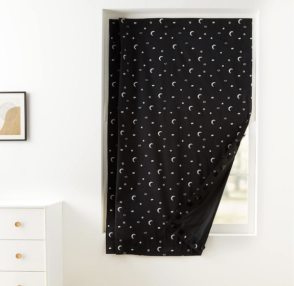 Going back to the subject of blackout, these come with us everywhere. Hotel curtains always seem to have that one mysterious glowing gap, right? Or the guestroom doesn’t factor in a kid’s desire to wake with the sun. These stick right to the window, block out streetlights and sunrises and help convince kids (and adults) it’s not morning at 5:42 AM.